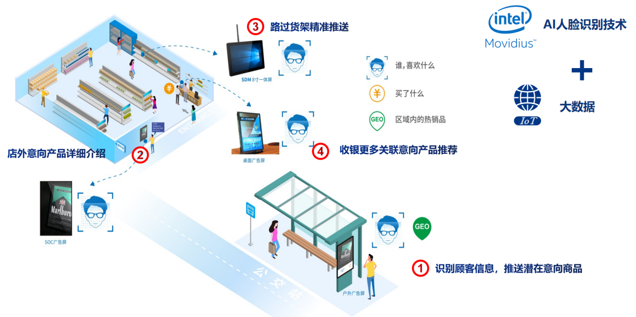 为了更好的迎合产业发展的趋势,对产业输出新鲜的营销理念和模式,驱动零售业数字化、智慧化管理模式的进一步升级,三亿科技集成了Intel®Movidius视觉识别技术和OpenVINOTM人工智能视觉学习技术,自主研发了三亿GDSM智慧商显平台。更凭借多年硬件开发经验,形成一套完整、切实的精准营销方案,获得了Intel®MRS市场方案认证。