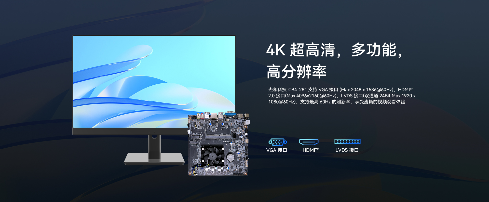 | 外部I/O | 接口 | 1 x VGA (Max.2048 x 1536@60Hz) 4 xUSB 3.2 Gen1(5G) |