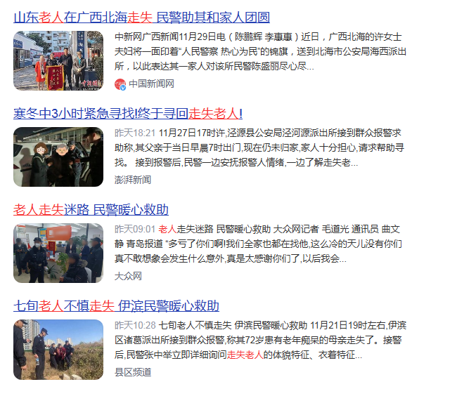 患有阿兹海默症的老人随时都有走丢的风险和发生意外的风险,并且无法准确描述自己的家庭住址和联系方式,给家人和警察的寻找工作带去一定难度。